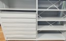 Полки, ящики и штанги в одном стеллажном блоке позволяют компактно разместить разноформатные экспонаты на минимальной площади.