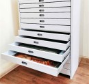 Мы можем изготовить металлический шкаф, ориентируясь на заданную высоту или количество ящиков, с нагрузкой до 30 кг на ящик.
