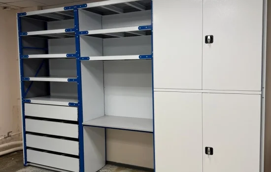Стеллажные комплексы с ящиками, дверями и рабочим местом — это идеальное решение для организации хранения и работы с мелкими предметами на складе, в цехе. Они представляют собой эргономичную систему хранения, которая обеспечивает быстрый и удобный доступ к необходимым инструментам или деталям.