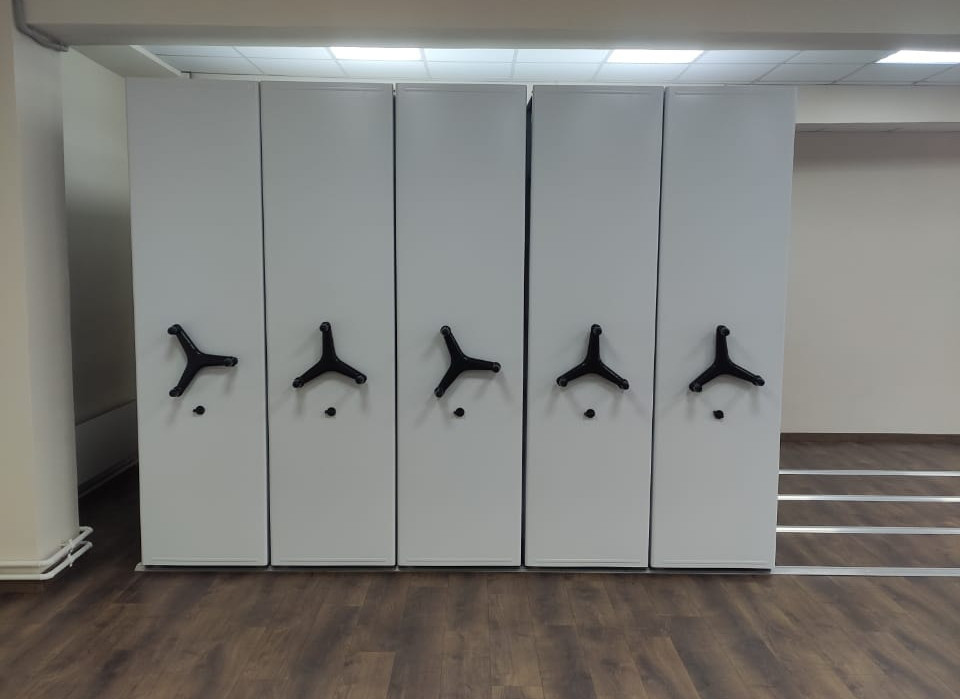 Для создания эффективной системы мобильного хранения мы производим металлические стеллажи с оптимальной высотой, глубиной и длинной полки оснащая их ручным или электронным управлением и соответствующим приводом. Перед изготовлением или комплектацией из набора стандартных деталей мы делаем проект мобильного архива с вариантами размещения стеллажей в помещениях. При подготовке проекта размещения стеллажей берется в расчет информация о формате хранимых документов, количество работников. Также принимаются в расчет особенности каждого помещения и учитываются требования Росархива и противопожарной службы.